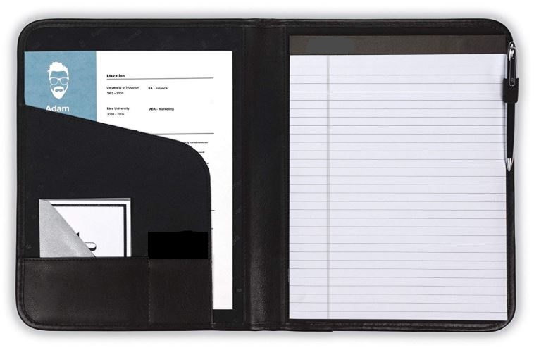 Seriously, do not even think about arriving at an interview without these items. Maybe even invest in a little portfolio thingy, like this. You can pick one up at an office supply store – a nice leather one to use for many years, or a cheap pleather one for $15 on a certain marketplace website.